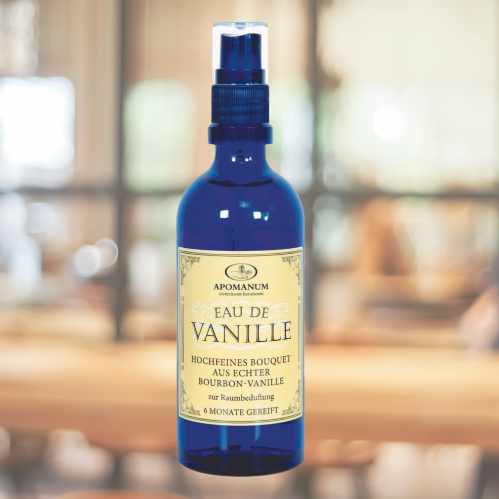Das Raumspray Eau de Vanille von Apomanum ist ein in Handarbeit hergestellter Raumduft mit rein pflanzlichen Inhaltsstoffen. Durch die mehrmonatige Reifung mit feinsten Bourbon-Vanille-Schoten erhält dieser Duft seine authentische Duftqualität und edle, sinnliche Duftnote. Ein einzigartiges Duftwasser mit beruhigender Wirkung, zu Recht als "Flüssige Vanille" bezeichnet.