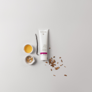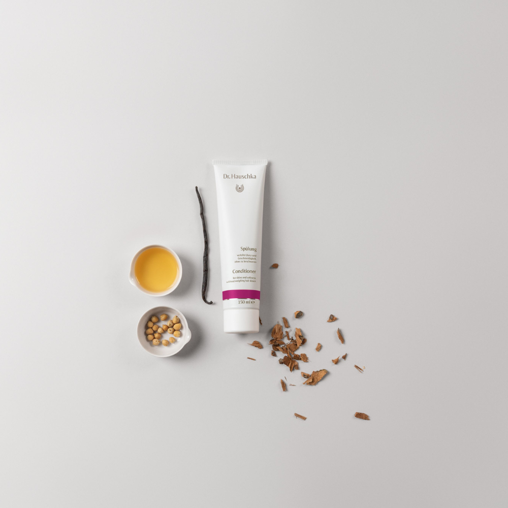 Die Komposition mit Neem, Kokosöl und Apfelessig verleiht Glanz und Geschmeidigkeit. Wertvolle Heilpflanzenauszüge und Öle sowie ein proteinreicher Kichererbsenauszug pflegen, ohne zu beschweren. Kämm- und Frisierbarkeit wird verbessert, fliegende Haare verhindert. Vanille und weiße Blüten schenken dem Haar cremigen Duft. Ohne Silikone. Zur Reinigung empfehlen wir das Dr. Hauschka Shampoo.