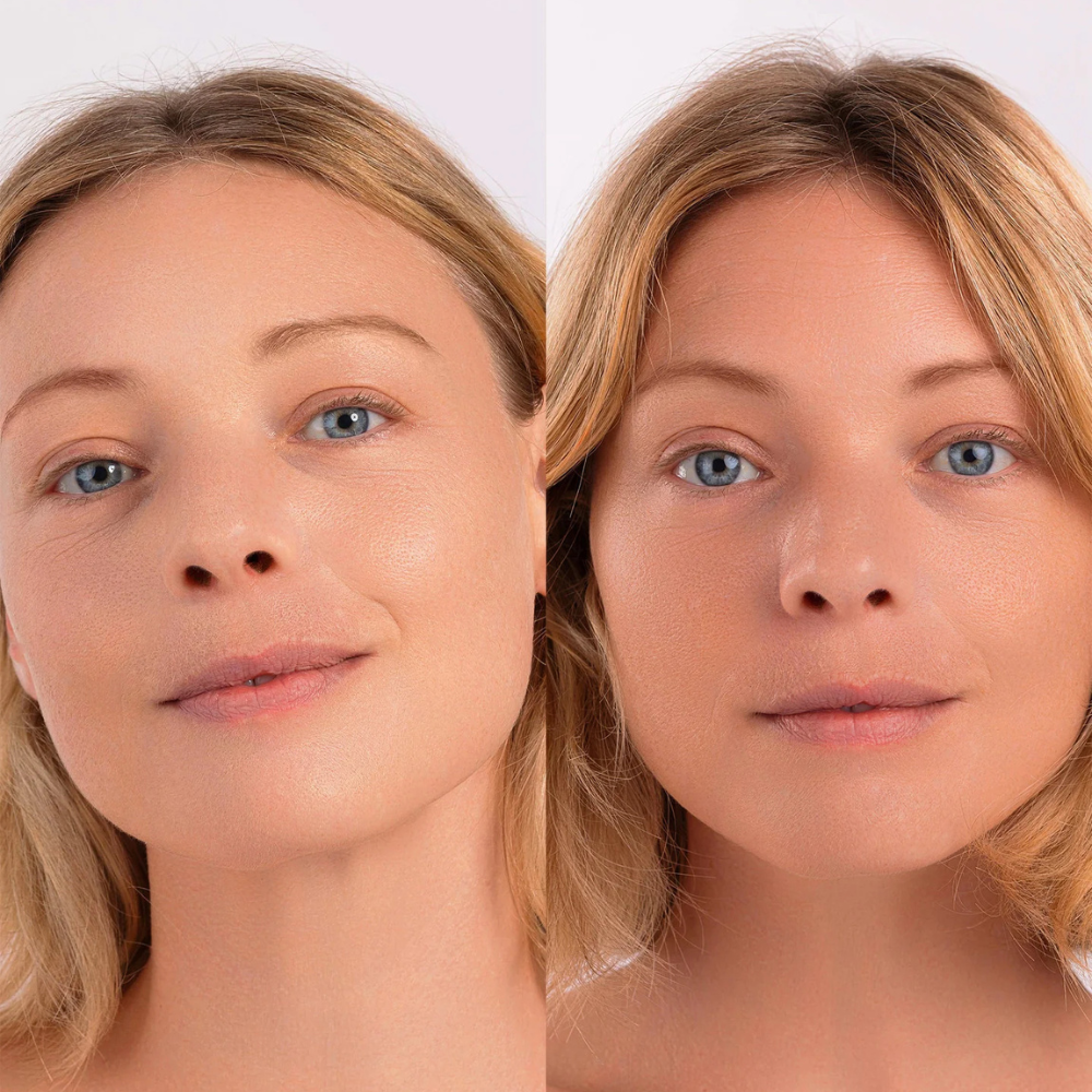 Trage morgens eine kleine Menge des Konzentrats auf Gesicht, Hals und Dekolleté auf. Massiere es anschließend sanft mit den Fingerspitzen ein.