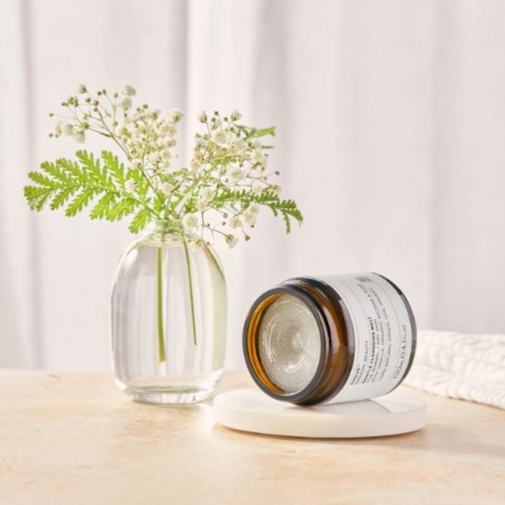 Massiere den Reinigungsbalsam sanft in deine trockene Haut ein. Trage anschließend warmes Wasser auf, um das Ganze in eine Reinigungsmilch zu verwandeln. Spüle die Milch dann mit warmem Wasser gründlich ab.