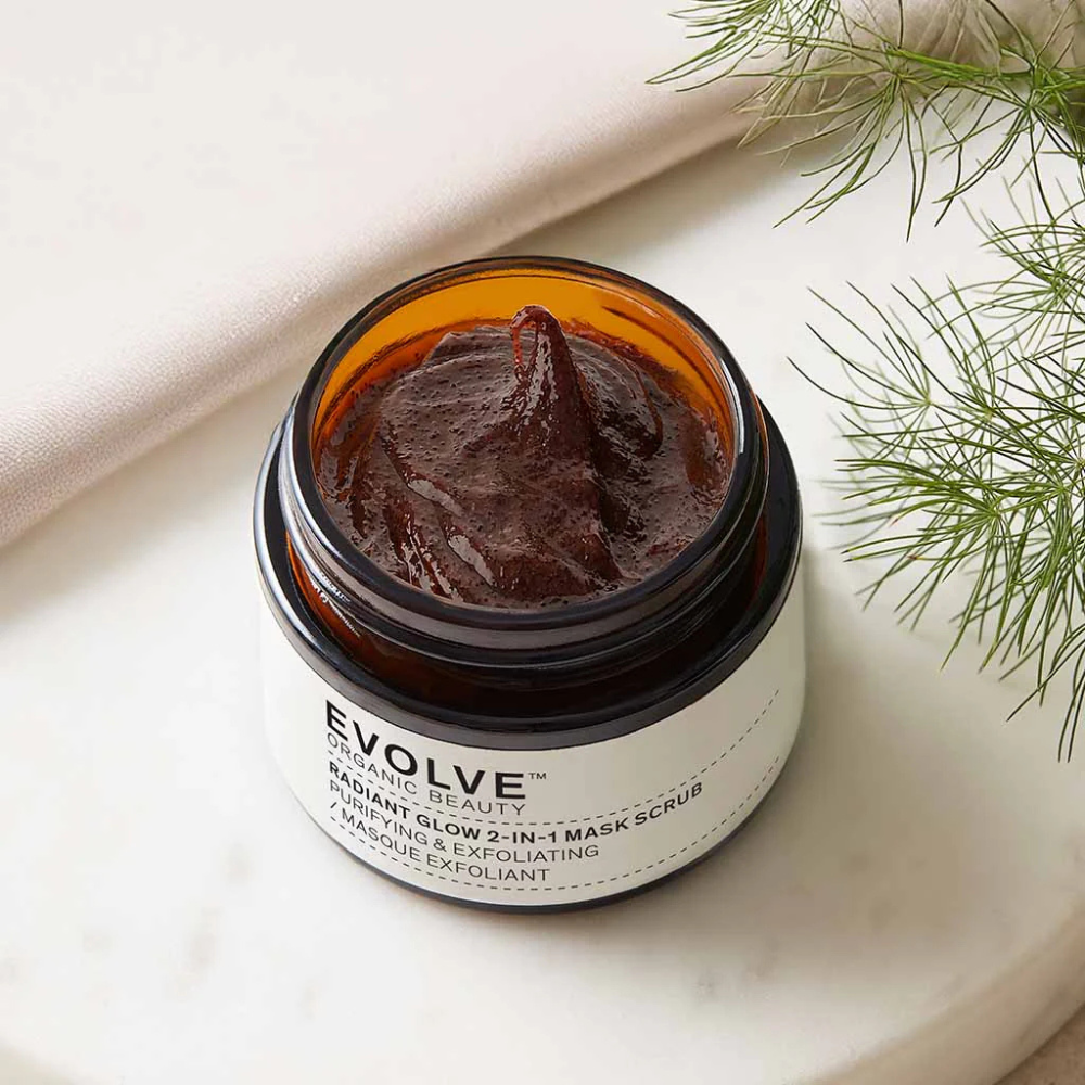 Die Radiant Glow Mask von Evolve ist eine Reinigungsmaske, die mit feinem Kakaopuder, Kokosnussgranulat und Zuckermolekülen deine Haut sanft reinigt. Rohkakao regt dank der enthaltenen Omega-6-Fettsäuren, Magnesium und Vitamin C die Zellregeneration an und führt so zur optischen Verjüngung der Haut. Das Kokosnussgranulat besteht aus upgecycelten Partikeln der Kokosnussschale und bewirkt den peelenden Effekt. Das zusätzlich enthaltene Mandelöl ist besonders reich an Vitamin A, E und B und sehr feuchtigkeitsspendend. Der Duft nach verführerischer Vanille macht die Glow Mask einfach unwiderstehlich.