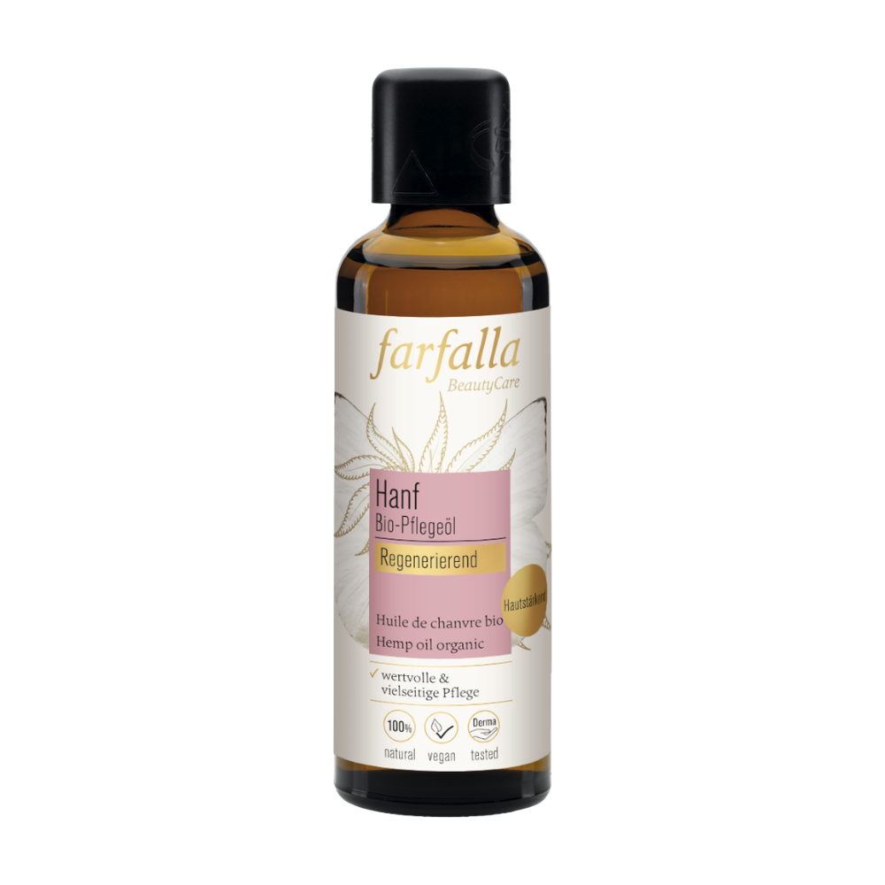Das Hanf Bio-Pflegeöl von Farfalla ist ein wohltuendes Gesichts- und Körperöl für sensible, trockene und reife Haut. Sein hoher Gehalt an essentiellen Fettsäuren und seine besänftigende, regenerierende Wirkung macht es zum idealen Helfer bei gestresster Haut.