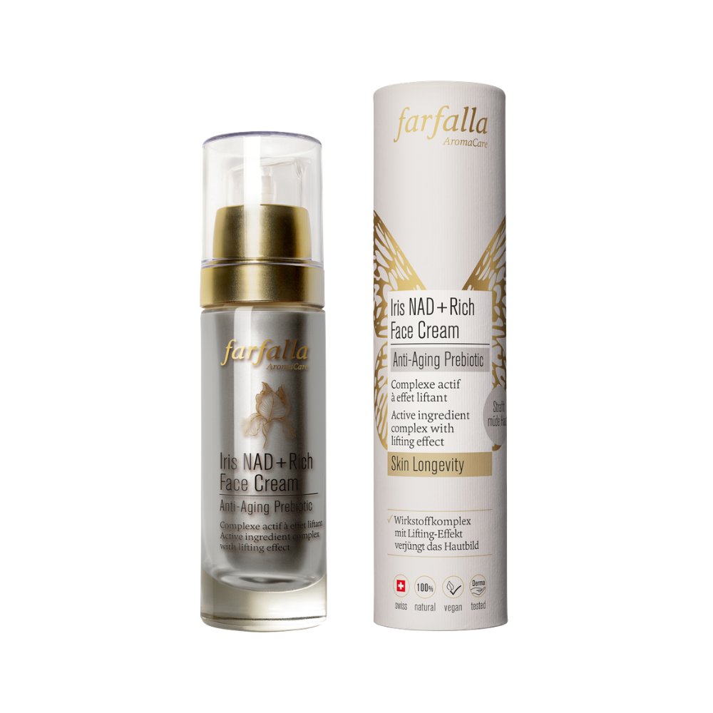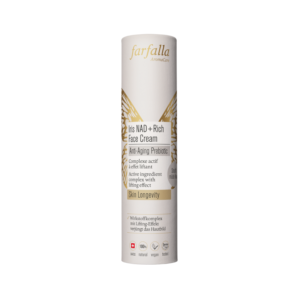 Die Iris NAD+ Rich Face Cream von Farfalla ist eine hochwirksame Ant-Aging-Gesichtscreme, die die Haut sichtbar glättet und Falten reduziert. Der effektive Wirkstoffkomplex mit NAD+ und Q10 pflegt deine Haut und sorgt für ein revitalisiertes Hautbild. Wertvolle Pflanzenwirkstoffe unterstützen deine Haut zusätzlich bei der Zellerneuerung und verbessern Faltentiefe und Hautbild. Granatapfelöl gibt deiner Haut Spannkraft und schützt sie vor Austrocknung. Für die trockene und reife Haut geeignet.