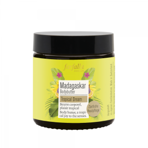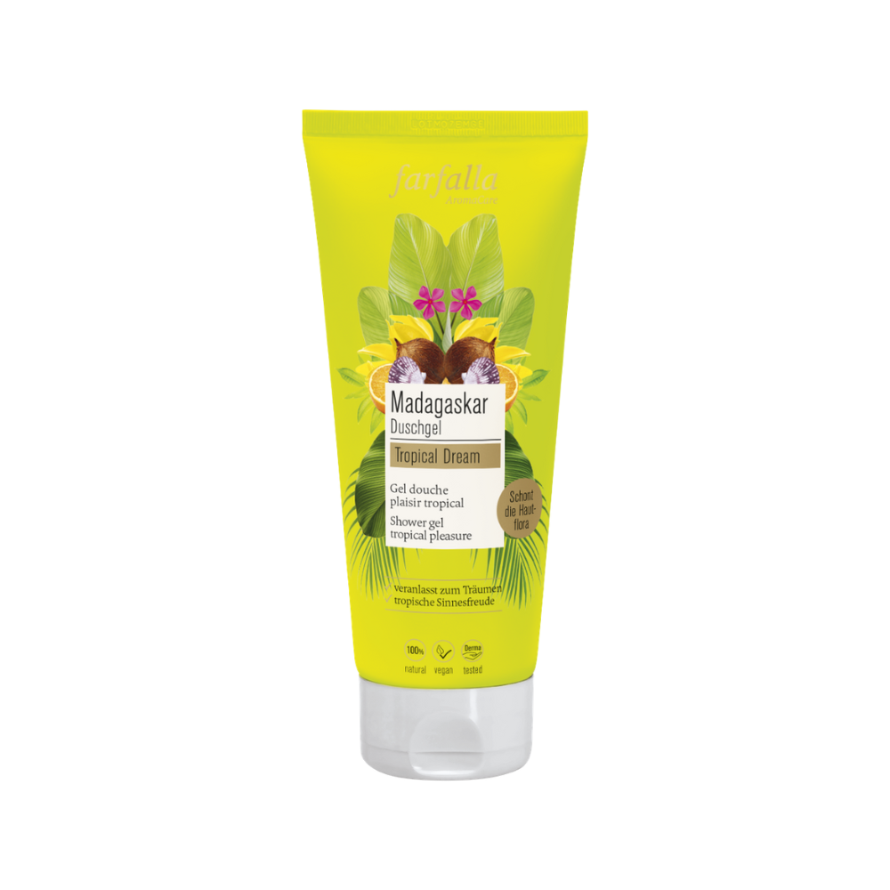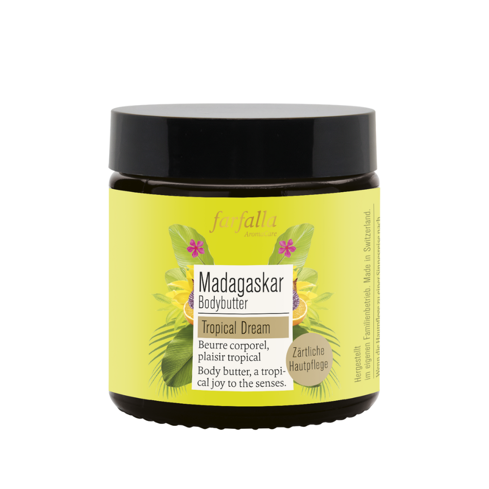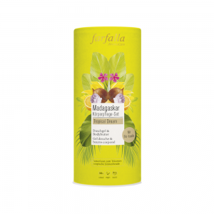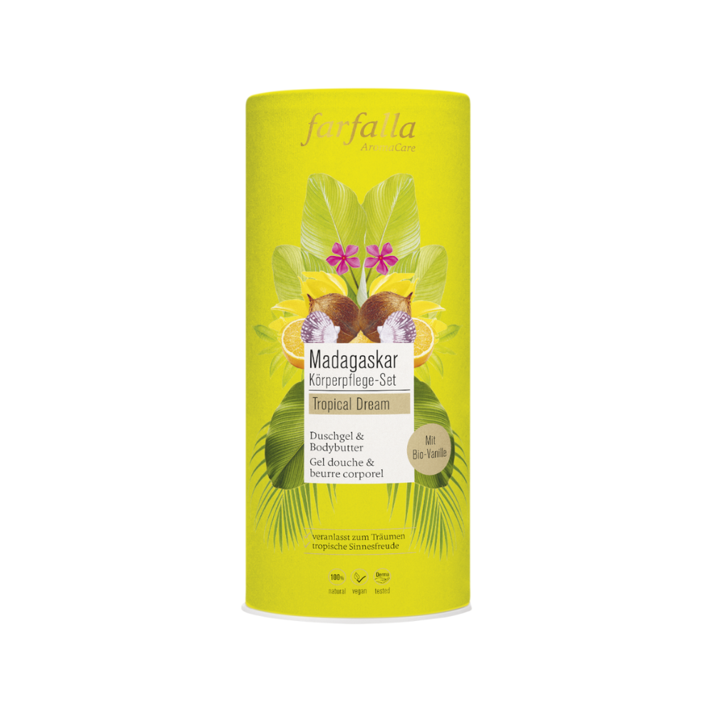 Das Madagaskar Körperpflege-Set Tropical Dream von Farfalla entführt dich auf eine sinnliche Reise in das Tropische Paradies von Madagaskar. Schließe die Augen und lasse dich von den exotischen Aromen von Frangipani, Vanille und Kokos verwöhnen. Das Set beinhaltet das Duschgel Madagaskar mit pflanzlichen Tensiden, welche deine Haut besonders sanft und mild reinigen und die Bodybutter Madagaskar mit hautschmeichelnder Sheabutter für samtweiche und gepflegte Haut.