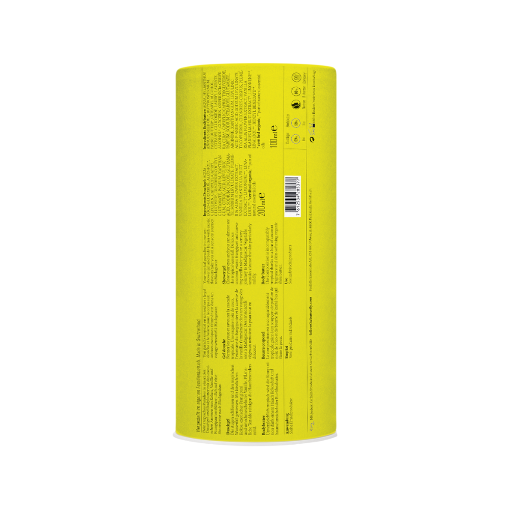 Trage das Duschgel auf die feuchte Haut auf und dusche es anschließend gründlich ab. Trage die Bodybutter auf die zuvor gereinigte Haut auf und massiere sie sanft ein. Inhaltsstoffe: