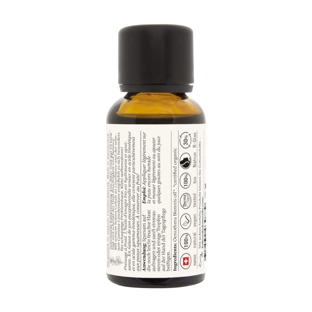 Das Nachtkerze Bio-Pflegeöl von Farfalla ist ein wohltuendes Gesichts- und Körperöl für besonders gestresste, schuppige und Problemhaut. Mit seinem hohen Gehalt an Linolsäure und seltener Gamma-Linolensäure regeneriert es intensiv und stellt das natürliche Gleichgewicht der Haut wieder her. Der Feuchtigkeitsverlust der Haut kann deutlich gesenkt werden, das Hautbild wird fühlbar beruhigt und geglättet.