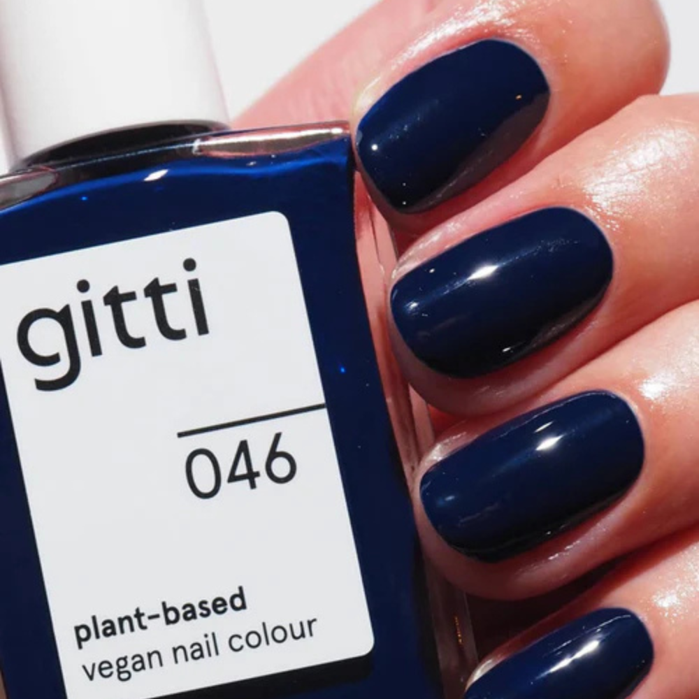 Maximale Deckkraft mit einem glänzenden Finish - Der Nagellack von gitti in der Farbnuance no. 046 Nocturne Navy ist pflanzenbasiert und ist mit seinen pflegenden Inhaltsstoffen wie dem wertvollen Traubenkernöl, Rettichwurzelextrakt und dem aufbauenden und nagelstärkenden Vitamin E die perfekte Maniküre für gesunde und gut aussehende Nägel. Hält bis zu 7 Tage. Der in Europa hergestellte Nagellack kommt in recyclebarem Glasfläschchen und ist frei von synthetischen Duftstoffen und Mineralölen.