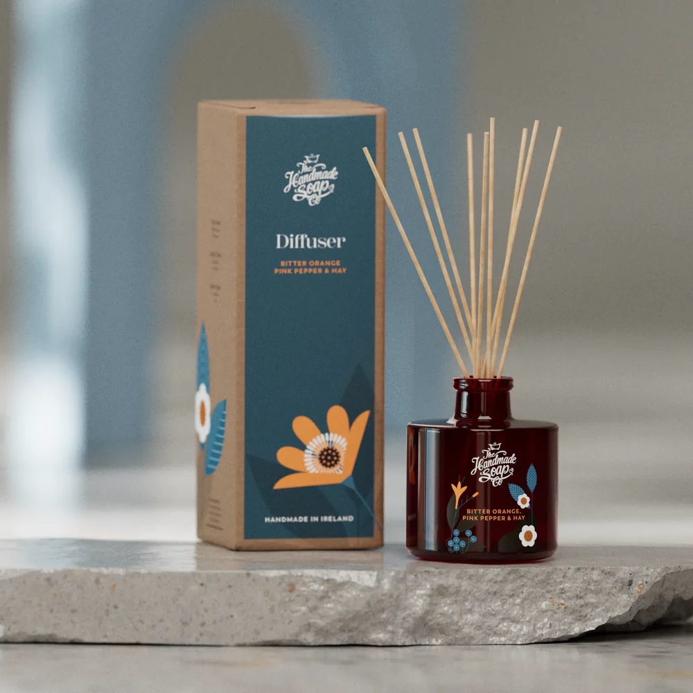 Inspiriert vom Duft der Heuernte im Sommer, füllt dieser wunderschöne Diffusor den Raum sanft mit Duft-Noten von Bitter Orange und Pinken Pfeffer. Der fein kombinierte Duft wirkt entspannend und verbreitet Freude Mit einer völlig natürlichen Diffusorbasis und ausschließlich mit ätherischen Ölen parfümiert, ist dies eine wunderschöne, sanfte Art, jeden Raum zu erfrischen.