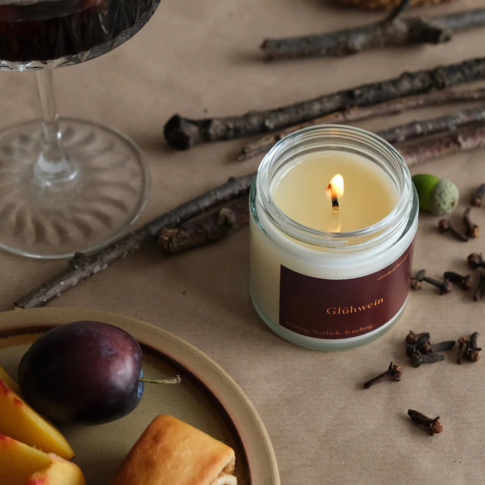 Die Aromakerze Glühwein von LIMA ist eine aus 100% Sojawachs hergestellte natürliche Duftkerze mit einer Brenndauer von bis zu 25 Stunden. Die liebevoll von Hand in Glastiegel abgefüllten Kerzen bestehen neben dem Sojawachs aus europäischer Lieferkette auch aus einem Baumwolldocht aus deutscher Herstellung. Die 100% reine ätherische Duftölmischung mit süß-würziger Note duftet winterlich nach Zimt und Nelken. Nelkenöl ist seit jeher ein bekanntes Mittel für Atemwegserkrankungen. Es beruhigt und kann auch Übelkeit abmildern.