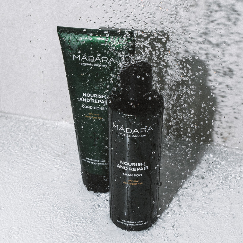 Auf das frisch gewaschene, feuchte Haar auftragen. 1 – 3 Minuten einwirken lassen, gründlich ausspülen. Für bessere Ergebnisse zusammen mit MÁDARA Nourish and Repair Shampoo anwenden.