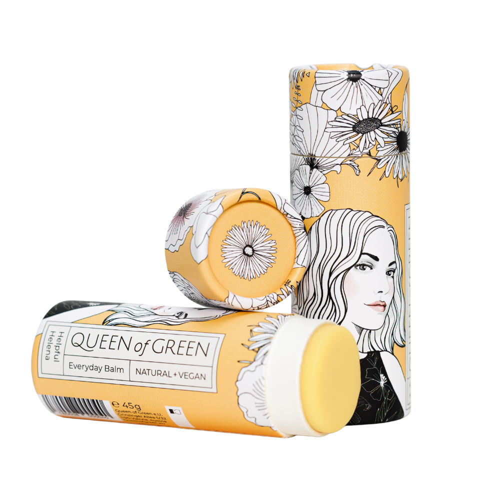 Helpful Helena von QUEEN of GREEN ist ein SOS-Multi-Balm. Er pflegt raue Ellenbogen, versorgt trockene Hände und Füße und zaubert von Wind und Wetter beanspruchte Haut wieder weich und glatt. Mit hochwirksamen Inhaltsstoffen wie heilendem Extrakt der Ringelblume, pflegendem Bio-Jojobaöl und zellschützendem, goldenen Seetang sorgt der Pflegestift dafür, dass sich strapazierte Haut wieder weich und gepflegt anfühlt.