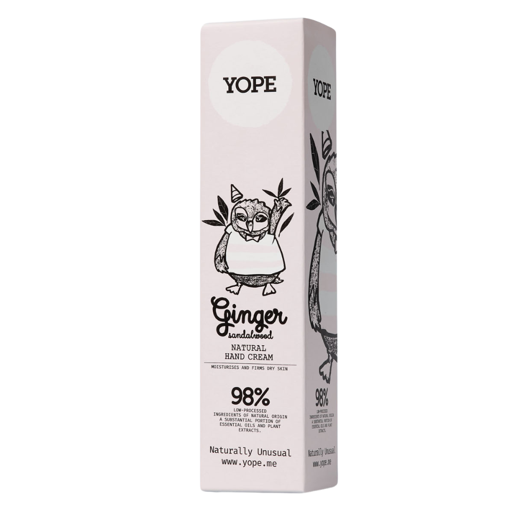 Die Natural Hand Cream Ginger & Sandalwood von Yope ist eine natürliche und elastizitätsfördernde Handcreme, die deiner Haut Feuchtigkeit spendet und sie vor den schädigenden Einflüssen freier Radikale schützt. Sheabutter, Argan- und Olivenöl stärken deine Hautbarriere und pflegen und nähren deine Haut, während Vitamin E den Alterungsprozess effektiv verzögert. Natürliche Extrakte aus Ingwer und Sandelholz geben dieser Creme nicht nur einen geheimnisvollen würzigen Duft, sondern regen auch die Mikrozirkulation an und helfen dabei, den Alterungsprozess deiner Haut zu verlangsamen. Für alle Hauttypen geeignet, insbesondere für trockene, rissige und zu Falten neigende Hände.